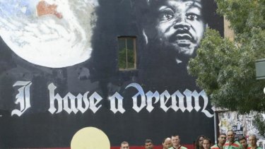 The fact that the club's co-owner, Academy Award-winning actor Russell Crowe, took the shot in front of a mural on Newtown's King Street because it entwined the Aboriginal flag with Martin Luther King's I Have A Dream affirmation, left Peachey overwhelmed with pride. "When Russell first lobbed at the club I took an idea to him to get all the Koori and Murri players from Souths together in front of I have a Dream," said Peachey, who played 25 times for Souths.