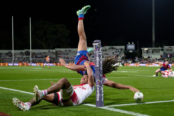 Young is literally a big deal. The two-metre winger topped the NRL try-scorer’s list last year during a breakout season with the Newcastle Knights before arriving in the eastern suburbs as a marquee recruit for glamour club Sydney Roosters. It caps a remarkable rise that began when, at the age of 17 and after just two English Super League games for Huddersfield, he decided to leave Yorkshire to try his luck as a professional footballer in Australia.
